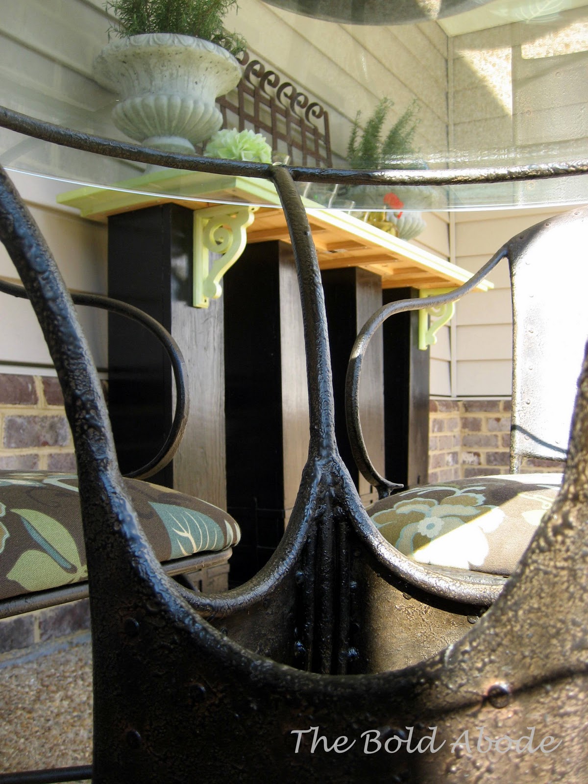 Love the combo of classic columns, corbels and urns with the fun colors and accessories. My hubby would so love the underside of the table top … he always uses bolts and braces when I manage to get him to build me things. Your narrow table has me thinking that I really should do something like that on our porch, but I’m definitely waiting until its less than 108 out there. I don’t think fall can come soon enough!